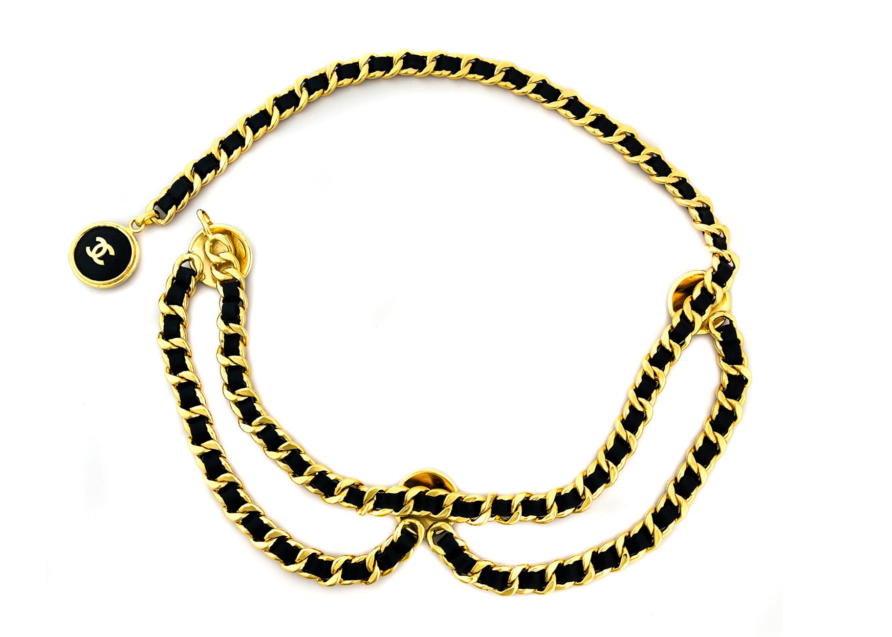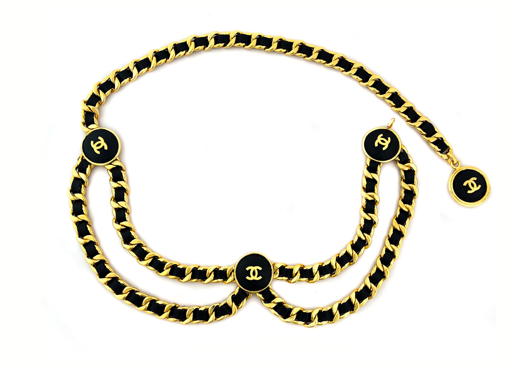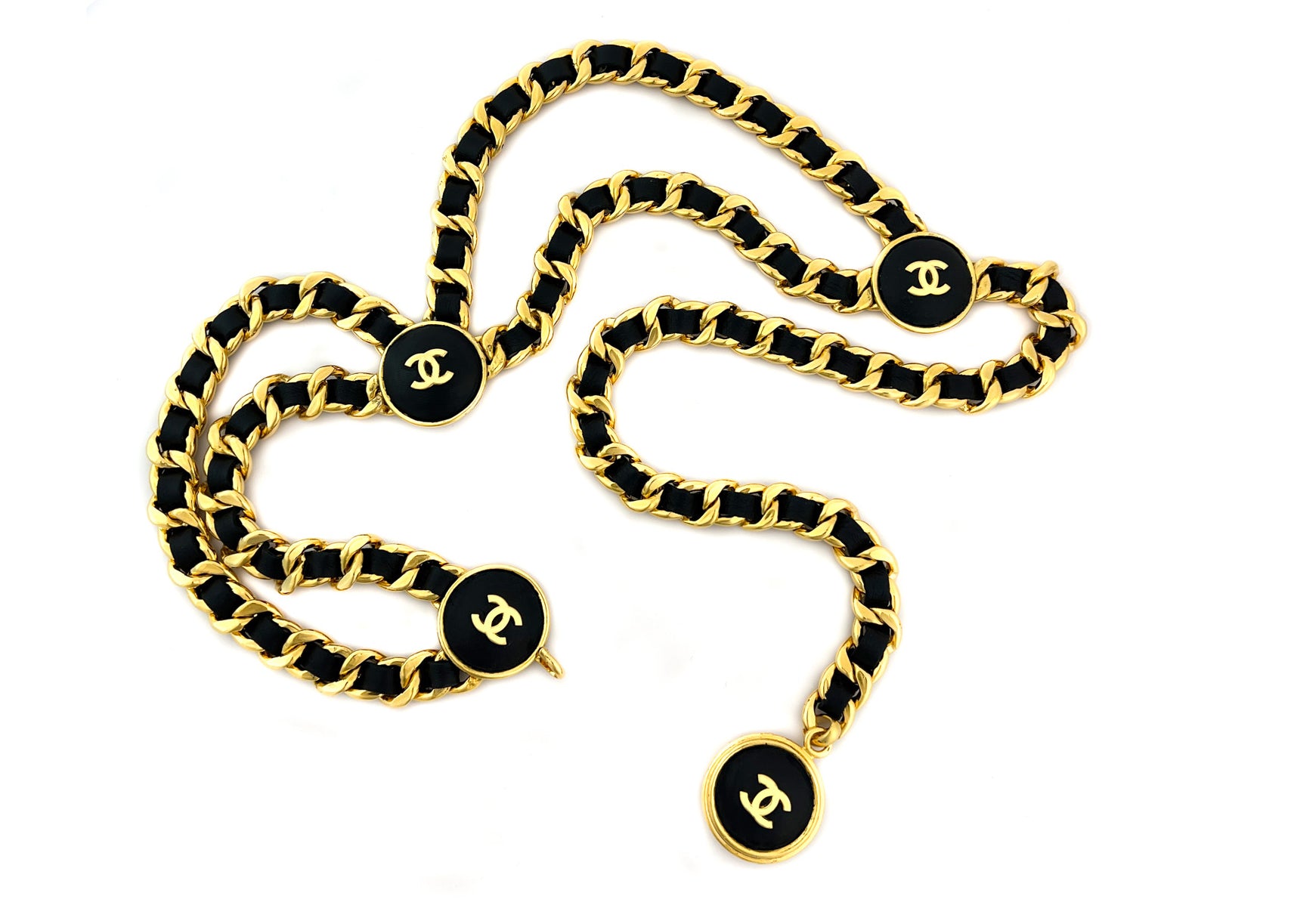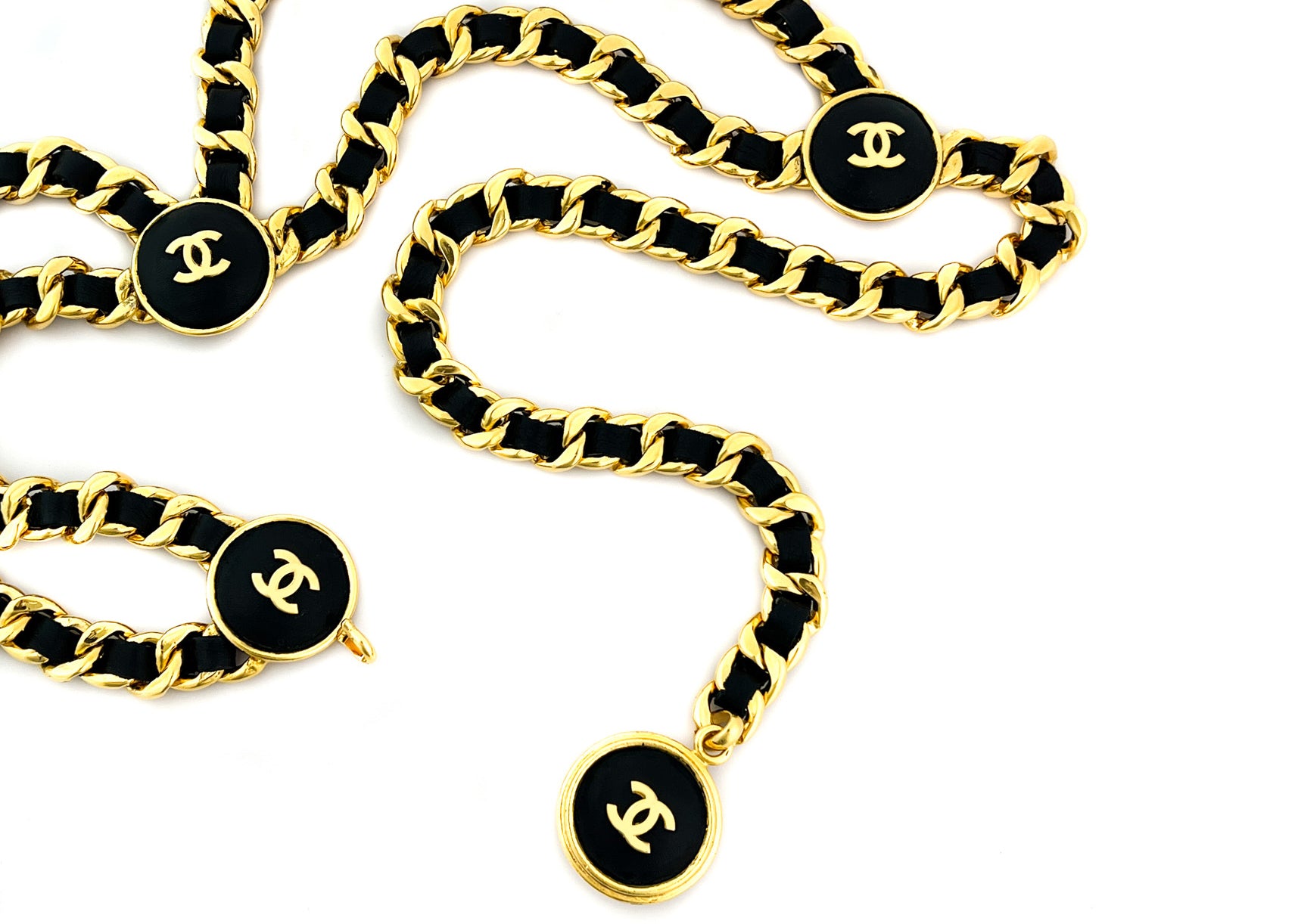 Chanel Vintage Rare Black Lambskin Thick Chain Logo Belt